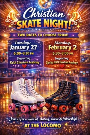 Save the dates for our Christian Skate nights! Join us for a night of skating, music and fellowship.