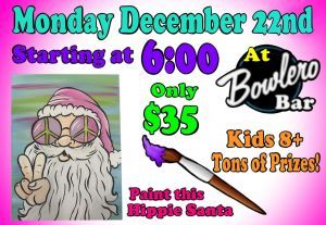“Have Yourself a Groovy Little Christmas!” We’re wrapping up the month with a far-out holiday painting party at Bowlero Bar ...