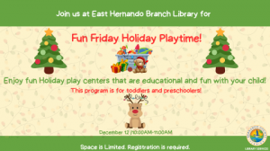 Join us for a fun holiday themed playtime! Experience fun and educational play centers with your child. These centers will ...