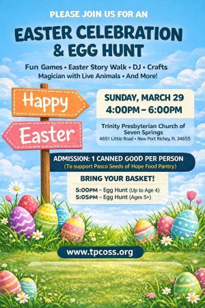 Bring the whole family and join us for a fun-filled Easter Celebration & Egg Hunt at Trinity Presbyterian Church of ...