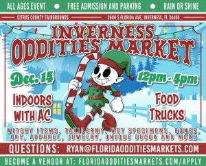 The Inverness Oddities Market! All Inside With Air-conditioning!! Over 60 vendors bringing you taxidermy, bugs, bones, wet specimens, handmade jewelry, spooky ...