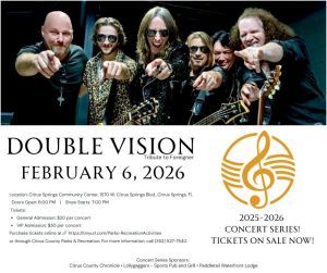 Experience unforgettable live performances - Citrus County Concert Series 2026. Doors open at 6:00 PM and shows begin at 7:00 PM. Join ...